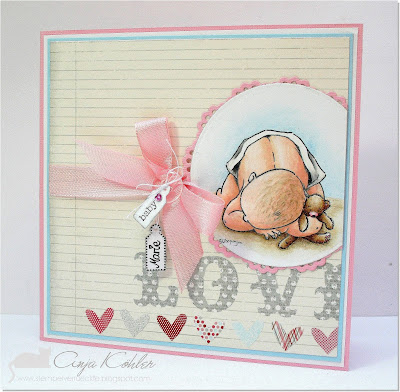 again a hearty welcome to the next challenge at Mo's Digital Pencil! This week it says "D is for", so we would like to see things beginning with "D" on your projects showcasing images from Mo Manning. For instance, on my Christmas card we have "dad", "doves" (on the DP) and "die cut". Anyway, I am sure you can think of a lot more!